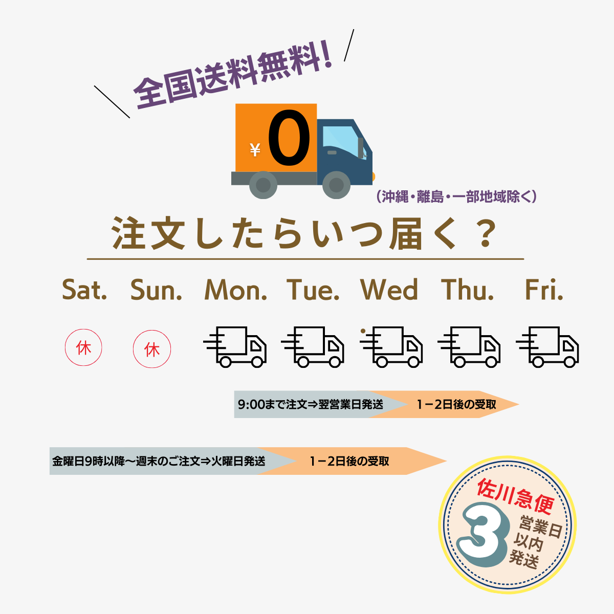 ※土・日・祝日・その他弊社指定期間は休業日となります。休業日のご注文は翌営業日の発送となります。