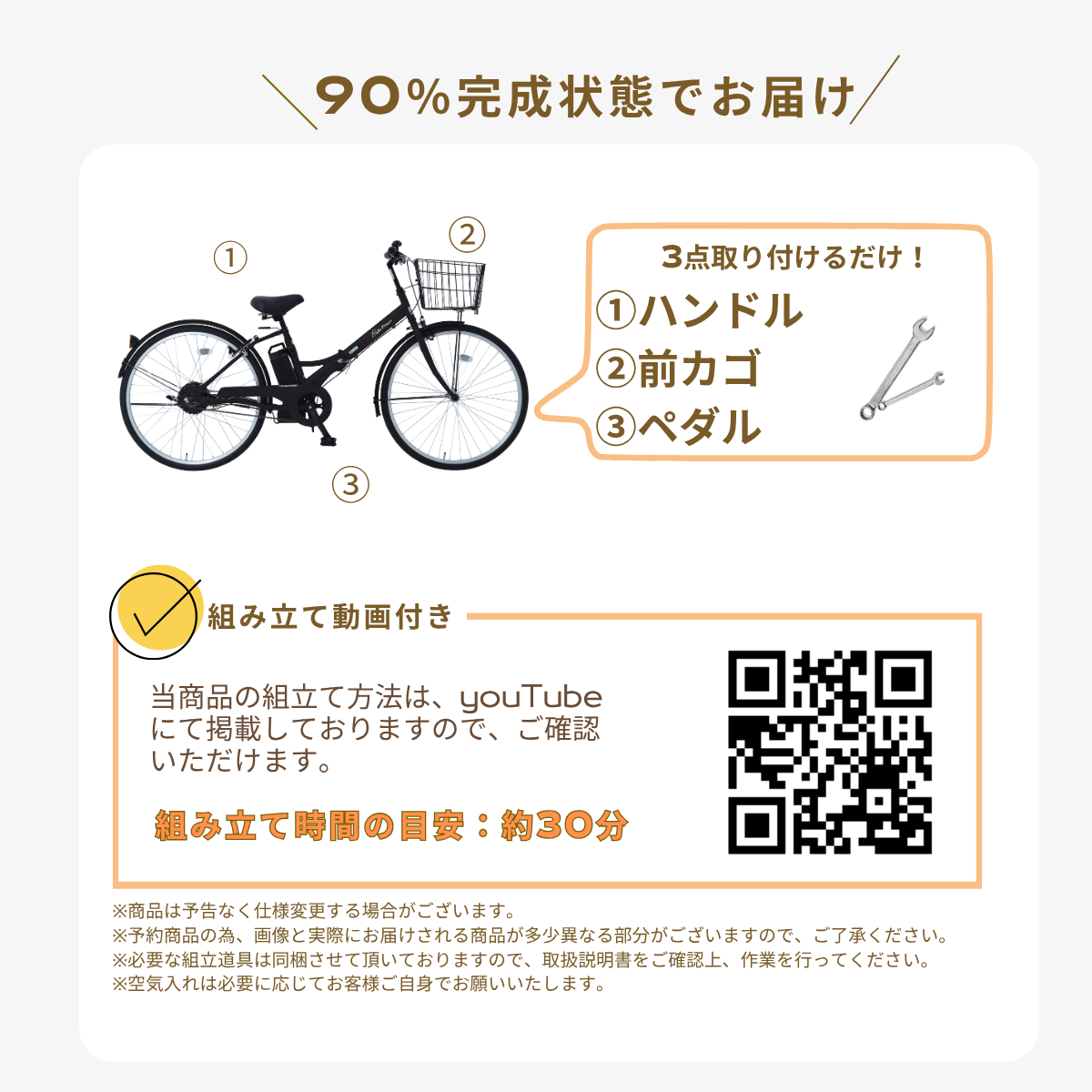 ※完全組立を行った完成車の状態で自転車をお届けします。